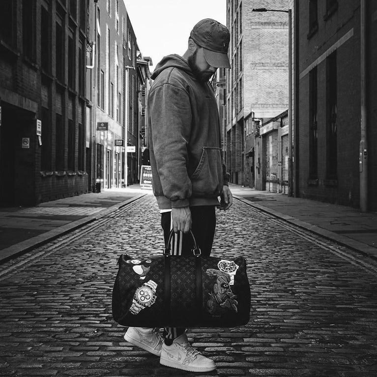 In celebration of Marvel Studios' Loki Season 2, now streaming on Disney+, CANVVS had three of their artists design a custom sneaker inspired by the new series. All three artists were given LØCI silhouettes which were kindly gifted by the rapidly growing vegan sneaker brand. All the arts interpreted the project differently meaning 3 very different and beautiful sneakers were able to be gifted. Pulling on the themes of time travel, mischief and the TVA universe the 3 pairs highlight the magic of the series and the iconic characters and adventures that unwind throughout.