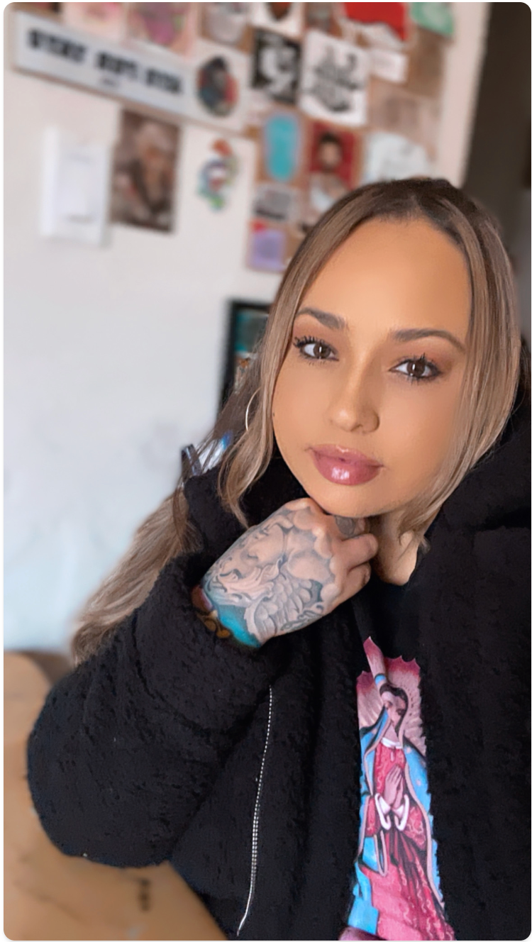 Monica Robledo, also known as Moni Mondro, is a Bay Area-based multimedia artist whose work bridges tattoo culture, lowrider art, and contemporary urban expression. Inspired by classic black-and-grey techniques, vibrant street energy, and nostalgic cartoons, she transforms everyday objects—like shoes—into canvases that tell stories. Each piece reflects her deep connection to culture and the beauty of individuality.